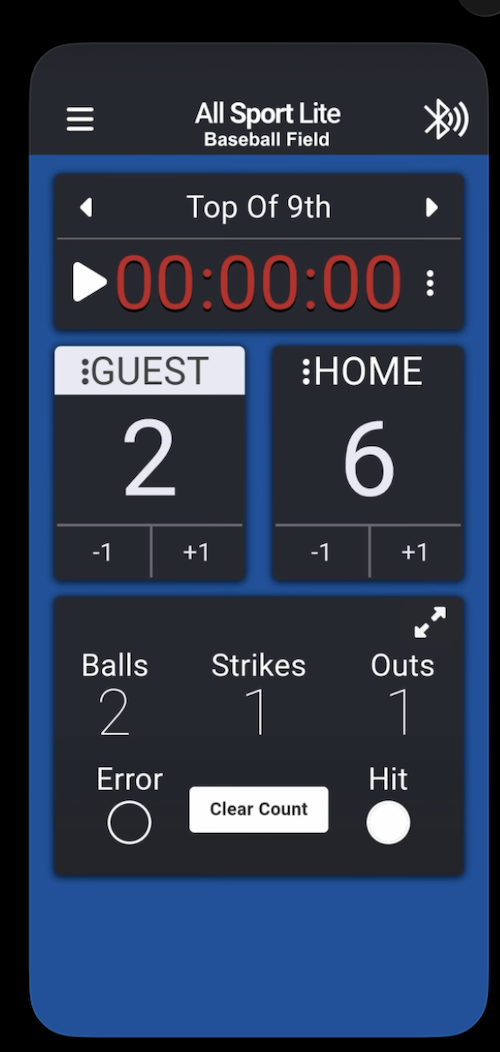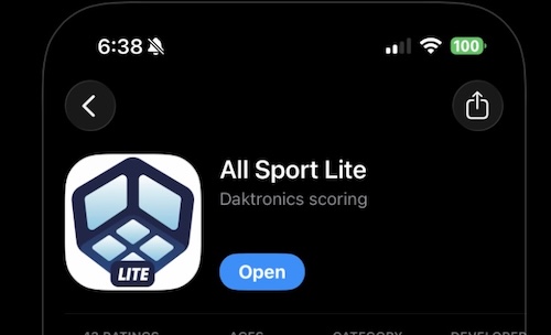 Volunteers can operate the scoreboard by downloading the "All Sports Lite" app from their mobile app store (Android/iPhone/iPad compatible).